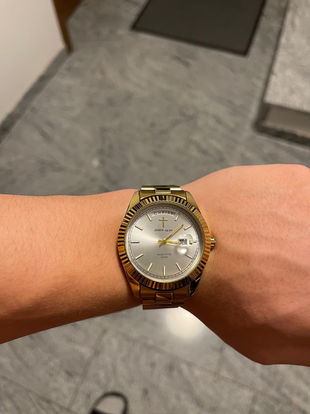 - Détails : Couronne avec croix embossée & fond de boîtier gravé
